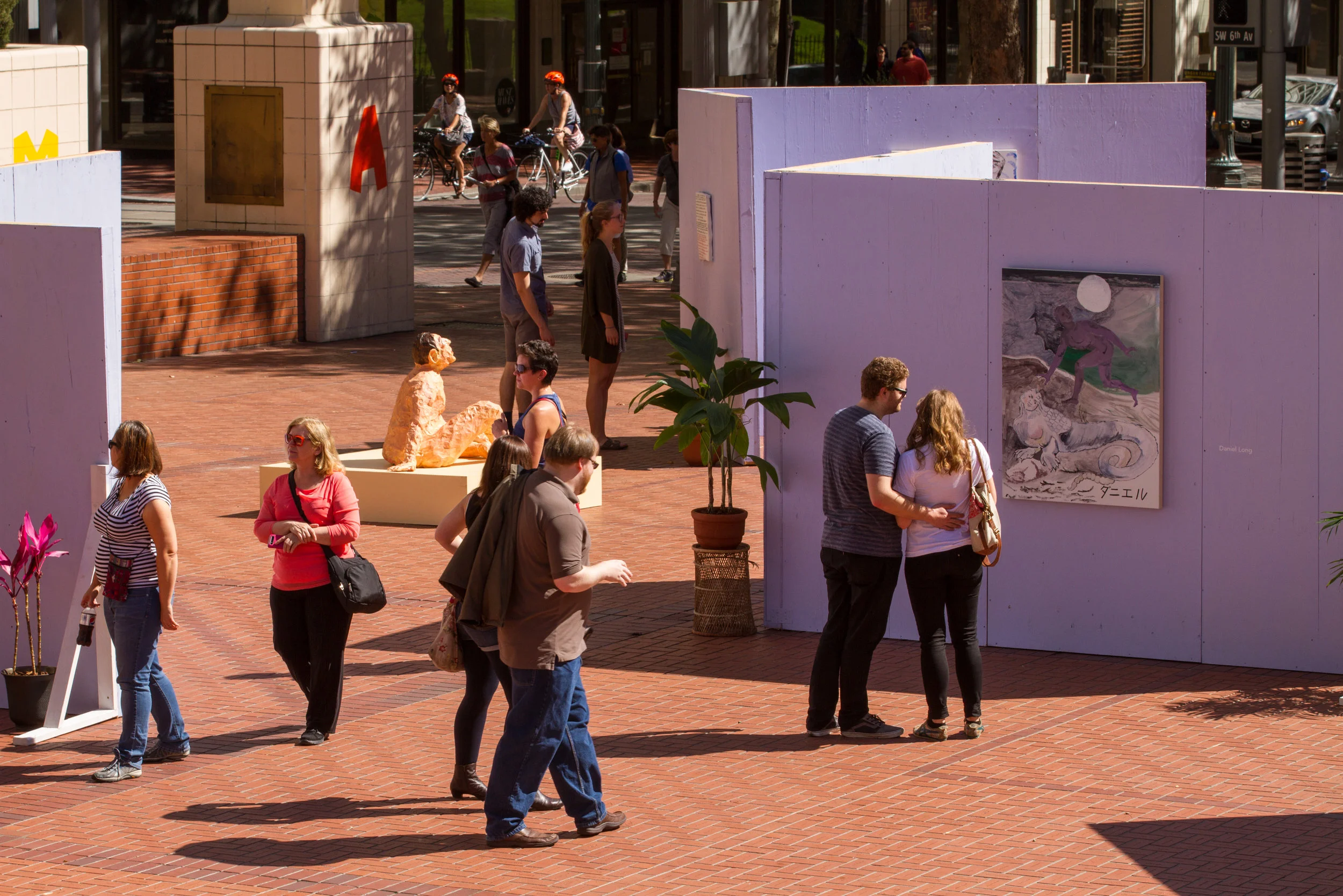 Houseguest Residency, 2016: Experimental free Museum hosted at Pioneer Courthouse Square, Portland Oregon’s largest and most accessible public plaza. This residency allowed me take my PMOMA inquiries to a larger platform. Erecting temporary walls within a 20,000 square foot square, I invited the public to visit a free, container-less “contemporary art museum” for two days of exhibitions, performances and public engagement activities. This museum installation was featured as a part of Portland Institute for Contemporary Art’s TBA Festival, 2016.